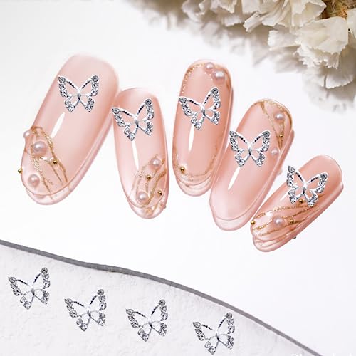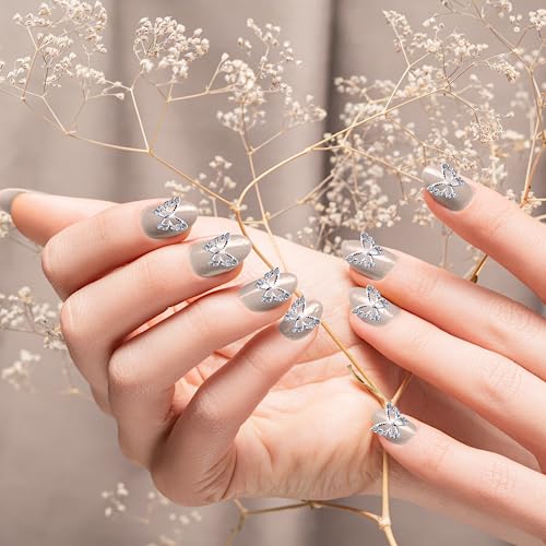 MIPIACE 20 Pezzi Strass Unghie Nail Art Farfalle 3D Decorazioni Unghie Nail Art per Donne Ragazze Manicure Design Fai Da Te Argento
