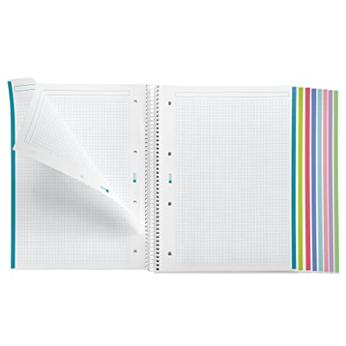 Quaderno di grandi dimensioni A4 (210 x 297 mm) con copertina rigida e quadretti 5 x 5 mm all'interno. Fogli bianchi con lati e interno in 8 colori che permettono una facile divisione per materie o argomenti nello stesso quaderno.