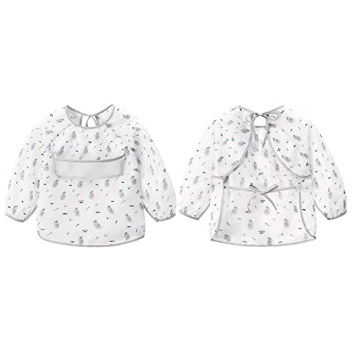 Miracle Baby Bavaglino a Manica Lunga Impermeabile 2 pezzi Bavaglino Bambino con Tasca Grembiule Pappa Lavabile per Dipingere, Giocare e Mangiare (Orsetti polari)