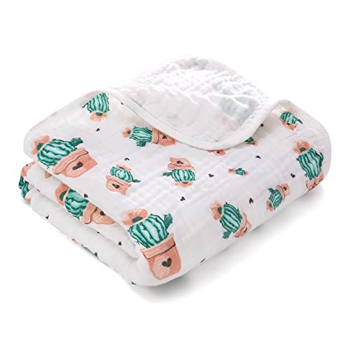 Miracle Baby Mussola,150 * 110cm,Coperta in cotone, Telo bagno, Regalo per bambini, Copertura per allattamento,doppi strati,Cactus