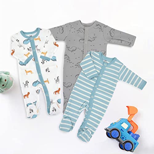 Miracle Baby 3 Pezzi Neonato Pagliaccetto in Cotone Bambino Pigiama Ragazze Ragazzi Tutine Manica Lunga Abbigliamento 0-7 Mesi