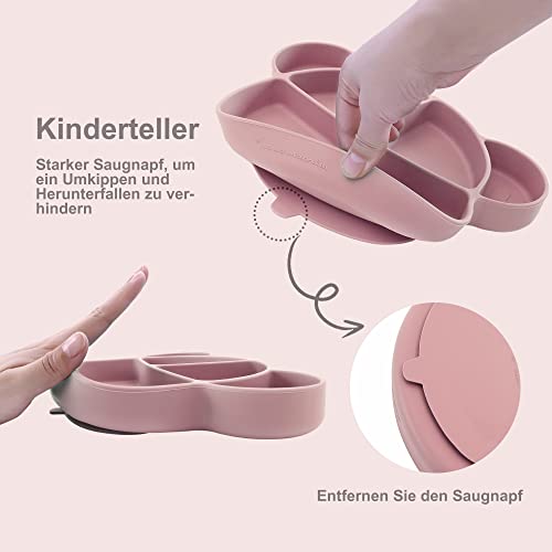 Miracle Baby Piatto con Ventosa per Bambini Piatto Svezzamento in Silicone con Coperchio e Cucchiaio Piattino Pappa Antiscivolo per Bebè Bambino e Bambina, senza BPA e Lavabile in Lavastoviglie, Rosa