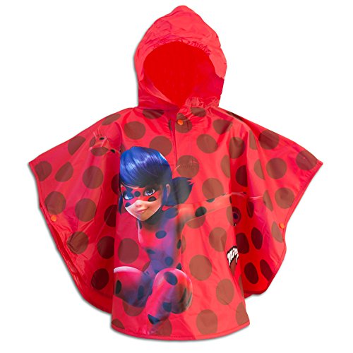 Miracolous LadyBug e Cat Noir - Poncho Mantellina da Pioggia con Capppuccio - Full Print - Bambina - Novità Prodotto Originale 641-057 [Rosso - 6 anni - 116 cm]