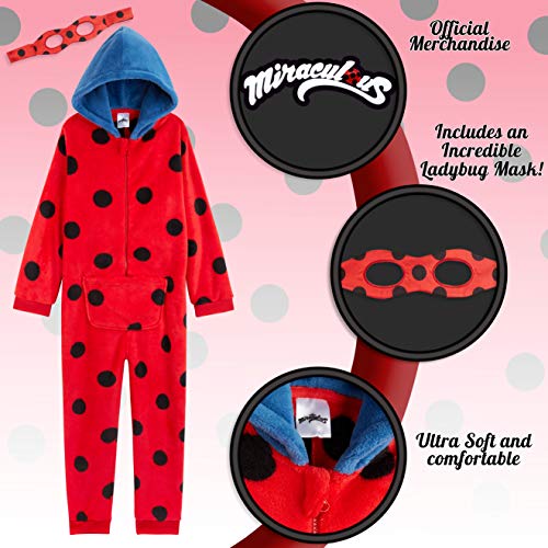 Miraculous Ladybug Pigiama Bambina Intero, Pigiamone in Pile con Cappuccio E Mascherina per Dormire 2-10 Anni (Rosso, 3-4 Anni)