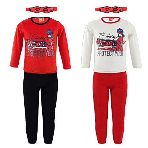 Miraculous LadyBug e Cat Noir - Pigiama Premium in Velluto con Maschera Coordinato Maglietta e Pantalone - Full Print - Bambina [2010 Rosso - 4 Anni - 104 cm]