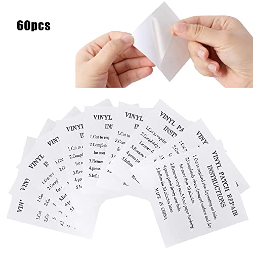 MIRFURT 60pcs Toppe di Riparazione,Patch di Riparazione Impermeabile Autoadesivo Impermeabile Patch Trasparente Riparazione Piscina Patch per Tenda Campeggio Anelli Nuoto Kit Gonfiabile 7x7cm
