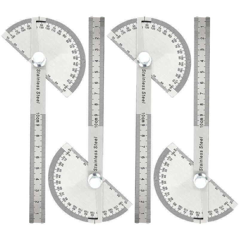 Materiale solido u0026 durevole Realizzato in acciaio inossidabile di alta qualità, il nostro goniometro è antiruggine, resistente all'abrasione e alla corrosione con elevata durezza e resistenza. Non c'è bisogno di preoccuparsi di piegarsi o rompersi durante la misurazione. Lettura precisaGrazie alla superficie levigata e lucida e alla tecnologia dell'incisione laser, i segni e i numeri sul goniometro e sul righello a testa tonda non si usurano o svanire per molto tempo. Le scale chiare sono chiare e di facile lettura, aiutandoti a ottenere la data in modo preciso e rapido. Angolo regolabileIl dado zigrinato può essere facilmente regolato per ruotare il goniometro o il righello di 180 gradi e bloccare il fisso angolo da misurare in base alle diverse esigenze. Inoltre, può essere utilizzato per staccare l'intero mirino angolare se è necessario utilizzarli separatamente. Strumento praticoIl nostro misuratore angolare è uno strumento pratico e indispensabile per la misurazione