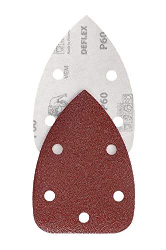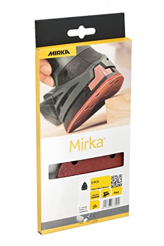 Mirka Red Delta - Triangoli di carta abrasiva per legno, 100 x 140 x 140 mm, 5 fori, grana P60, per levigare legno, metallo e plastica