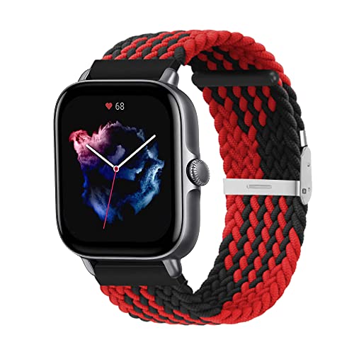 MiRowy 20MM Cinturino Compatible con Amazfit GTS 3/GTS 2 Mini/GTS 2, Regolabile Intrecciato Cinturino per Amazfit GTS 2e/GTS/Bip/Bip S/Bip Lite/Bip U Pro, Garmin vivoactive 3, Nero & Rosso