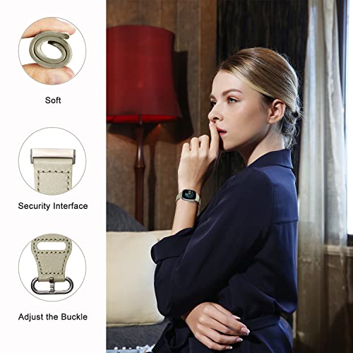 MiRowy Cinturino in Pelle per Fitbit Versa 4/Versa 3/Sense 2/Sense, con Fibbia Lucido in Acciaio Inossidabile, Regolabile di Ricambio Cinturino per Fitbit Versa 4/Versa 3/Sense 2/Sense - Bianco