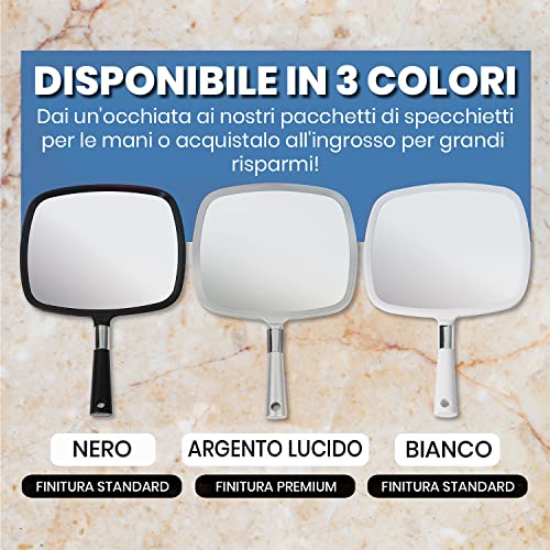 MIRRORVANA Specchio Portatile con Manico - Specchio a Mano Grande per Parrucchiere, Barbiere, Salone e Dentista - Bianco