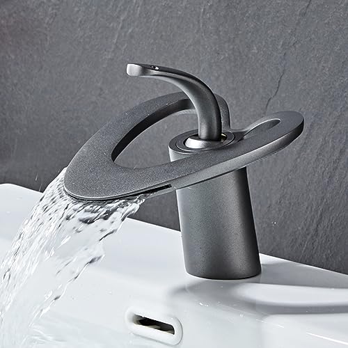 Miscelatore Bagno a Cascata, Cuore Cavo Rubinetto a Cascata per Lavabo, Rubinetto Moderno Monoforo,grigio