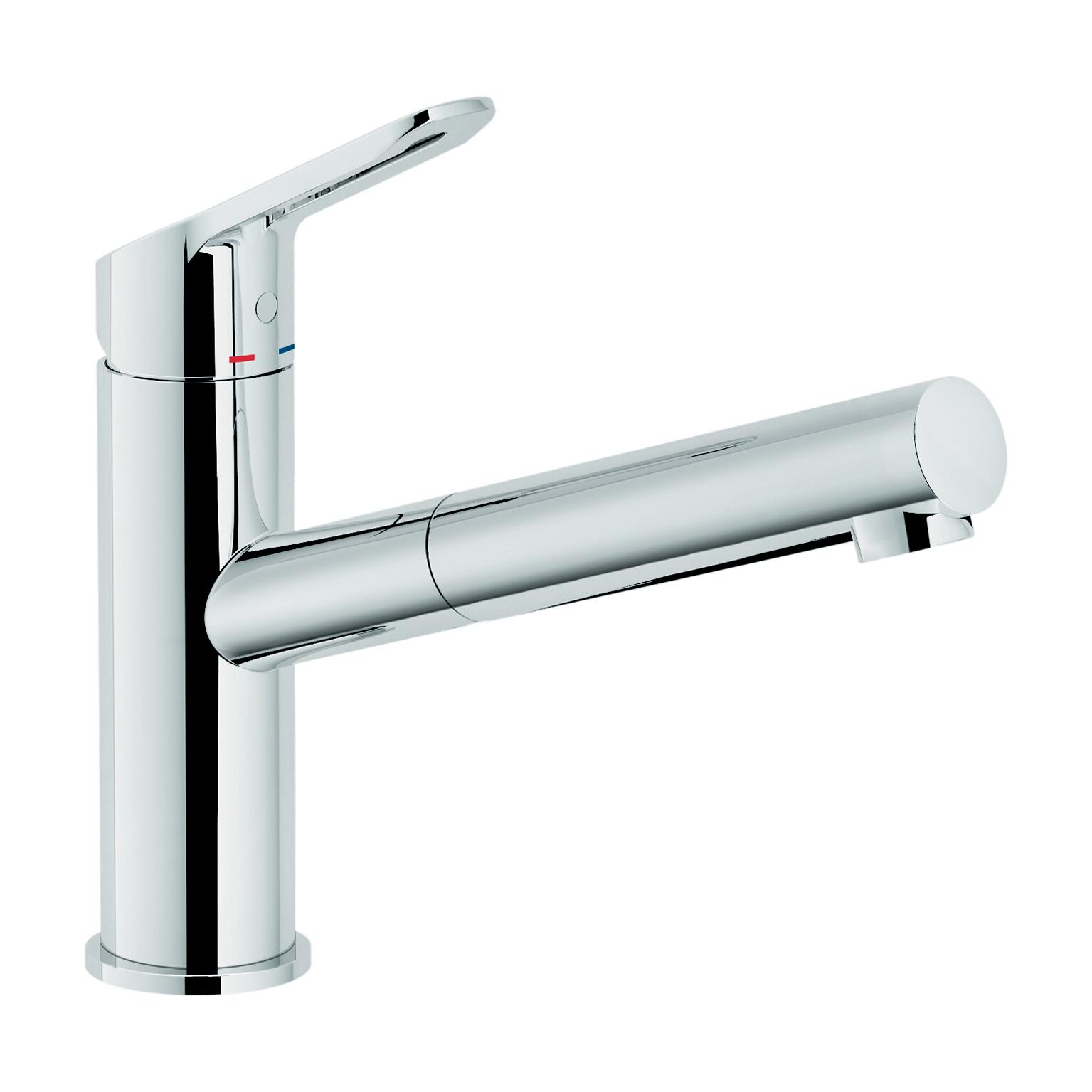 In ottone cromato lucido, canna bassa. Installazione in appoggio sul lavello o piano cucina. Canna bassa estraibile ideale per direzionare facilmente l'acqua, permette di riempire una pentola da 4 litri in 30 secondi. La doccetta estraibile permette un lavaggio agevole e il riempimento di pentole o contenitori. I dischi ceramici garantiscono la durata nel tempo
