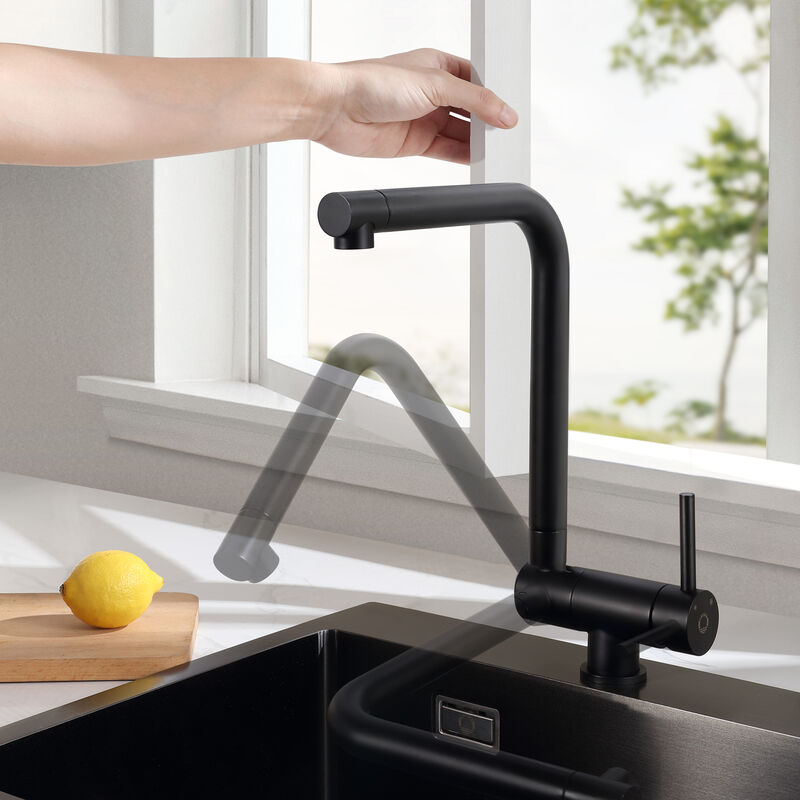 Cecipa Miscelatore Cucina Pieghevole Nero Rubinetto Cucina Pieghevole Rubinetto Acqua Calda Fredda contro Finestra, Acciaio Inossidabile 304 con Gorgogliatore Staccabile ♥ Progetta l'umanità ♥ Rubinetto pieghevole per lavandino davanti alla finestra, risolvi facilmente i tuoi problemi di apertura della finestra. ♥ Pieghevole 90° + Girevole 360° ♥ La rotazione su e giù di 90° con la testa dell'acqua rotante a 360° può regolare l'altezza e l'angolo dell'acqua a piacimento. Anche se il rubinetto è installato davanti a una finestra, può essere aperto semplicemente. ♥ Qualità eccellente ♥ Acciaio inossidabile 304 selezionato di alta qualità, lavorato con precisione, pieno di spessore, antiruggine e antideflagrante, prestazioni molto potenti, non facile da danneggiare, aspetto molto semplice, trattamento superficiale nero opaco, bello e facile da pulire durante la pulizia pulizia conveniente. ♥ Dall'acqua fredda all'acqua calda ♥ Per risparmiare acqua calda e prevenire ustioni, la maniglia
