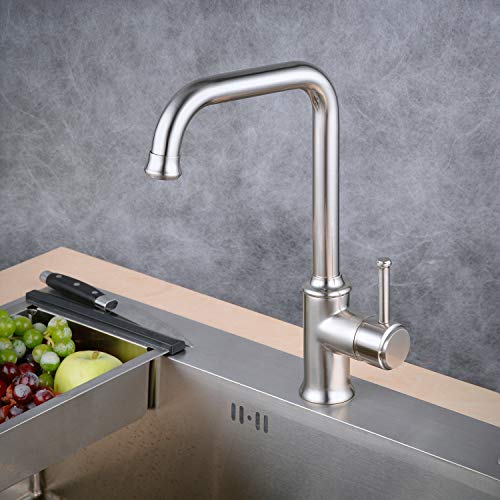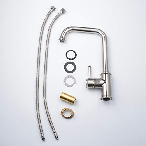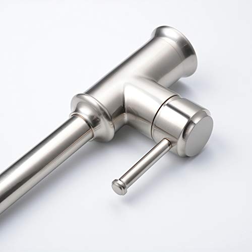 ►Facile da installare: un kit rubinetto miscelatore da cucina montato sul ponte - noi standard. Il rubinetto da cucina in nichel viene fornito con due tubi flessibili da 60 cm (connettore da 9/16" per aprire l'approvvigionamento idrico). 9.2-15.9 lpm, 0.1-0.3 MPa pressione dell'acqua è consigliata per le migliori prestazioni, può anche essere un rubinetto per lavello roulotte. Installazione semplice del rubinetto da cucina a