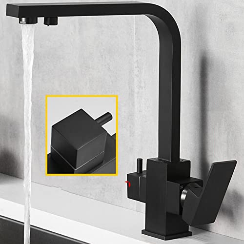Miscelatore Cucina 3 Vie Rubinetto Dritto Nero Girevole Ottone Multifunzione Rubinetto per Osmosi a Tre Vie