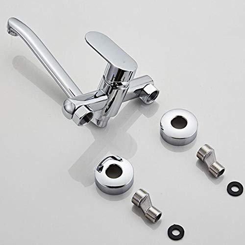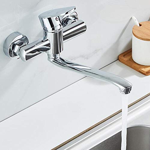 Miscelatore Cucina a Muro Rubinetto Cucina Girevole Rubinetto Caldo e Freddo Lavello Cucina Doppio Foro Ottone Rubinetto Bagno Cromato-20 Cm