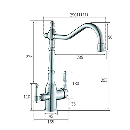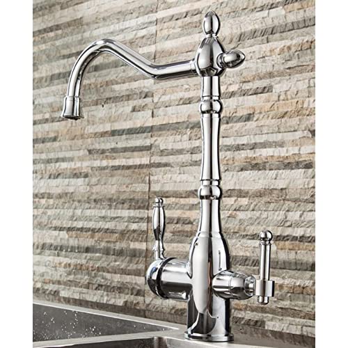 Miscelatore Cucina A Tre Vie Rubinetto Cucina Osmosi Ottone Acqua Calda e Fredda Girevole Rubinetto Lavello Cucina-Cromo