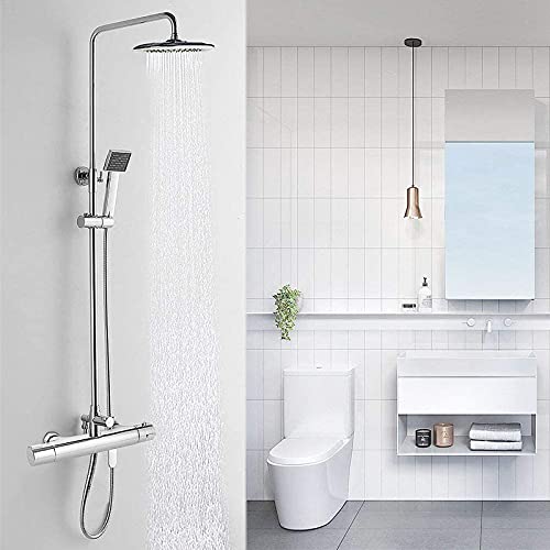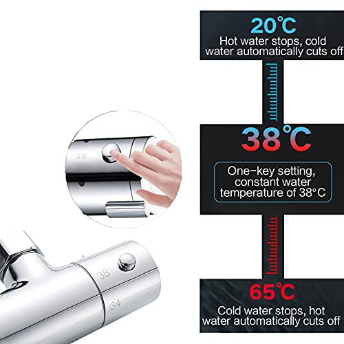 Miscelatore Doccia, Miscelatore Termostatico per Doccia in Ottone, Termostatico 38 ℃ Anti-scottatura, con Protezione di Sicurezza, Cromato, Alto G3/4 BSP (25 mm) + Basso G1/2" BSP (21 mm)