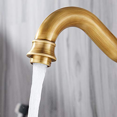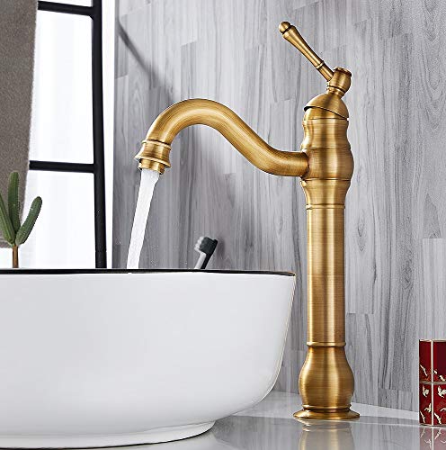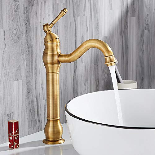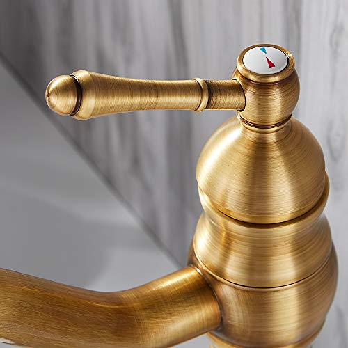 Miscelatore Lavabo Bagno Ottone Anticato Rotazione 360° Monocomando Rubinetto Bagno Vintage con Acqua Fredda e Calda