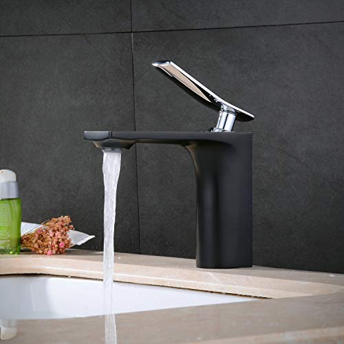 Miscelatore Lavabo Bagno Rubinetto a Cascata Miscelatore Lavabo Rubinetto con Acqua Fredda e Calda,Nero