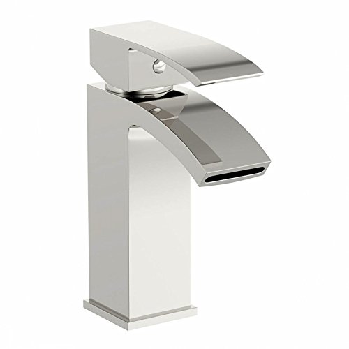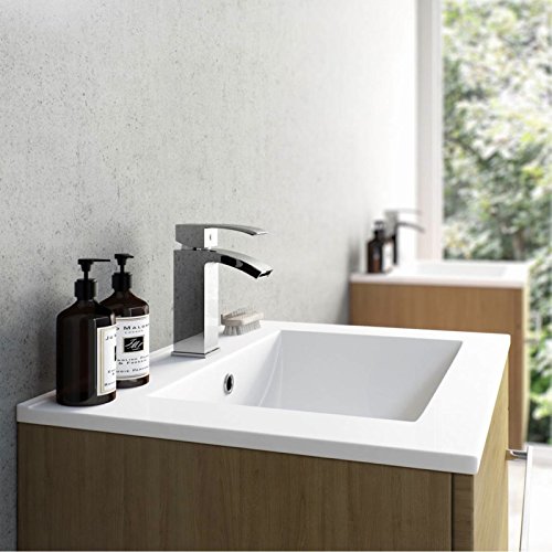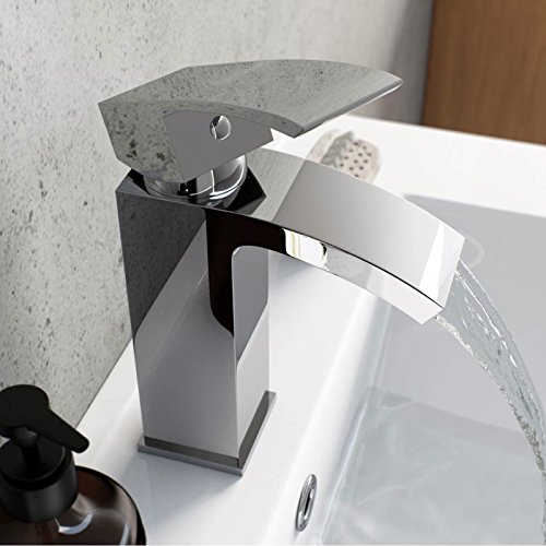 ENKI Miscelatore lavabo squadrato a collo di cigno ottone cromato CASCADE