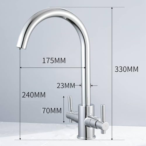 Controllo a doppia maniglia: la doppia leva controlla separatamente l'acqua calda e fredda, ideale per i tradizionali sistemi idrici britannici. Con beccuccio girevole a 360°, il rubinetto per lavello da cucina è disponibile per lavello da cucina da 1, 1,5 e 2 ciotole.