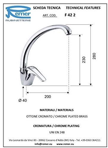 Miscelatore lavello. da piano remer f422