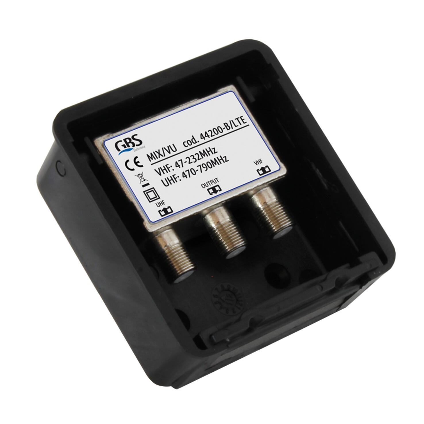 1 ingresso UHF, 1 ingresso VHF, 1 uscita, spinotto F