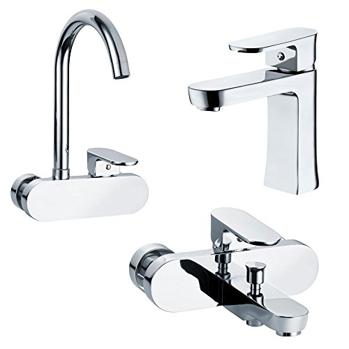 Inclusi nella confezione: rubinetto, kit di fissaggio e due tubi flessibili