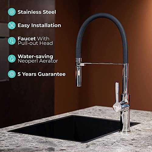 Miscelatore Rubinetto Lavello Cucina Mizzo Design Tolleno (Cromo-Nero)