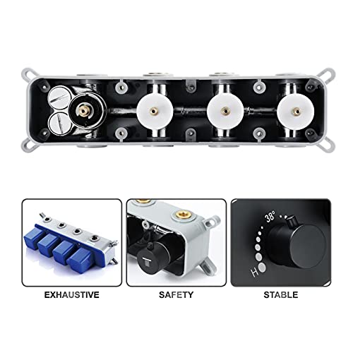 ★ Valvola termostatica: design amichevole, eappially per bambini ed antidicamente, prevenire la doccia scottata. Fermata di sicurezza a 38 gradi (100 ℉). Il dispositivo anti-scottatura integrato non significa che non fluttuano temperature dell'acqua fluttuanti durante la doccia. La manopola sinistra è il controllo della temperatura. È possibile regolare la temperatura a una temperatura desiderata