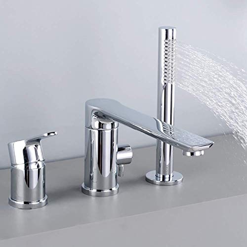 Miscelatore Per Vasca Da Bagno Cromato Vasca Da Bagno A 3 Fori Rubinetto in Ottone Vaschetta Da Bagno Con Doccia A Mano Miscelatore Acqua Calda E Fredda Miscelatore Da Bagno,Cromo