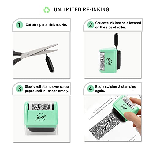 Miseyo Wide roller stamp Identity Theft timbro 3,8 cm perfetto per privacy protezione Green