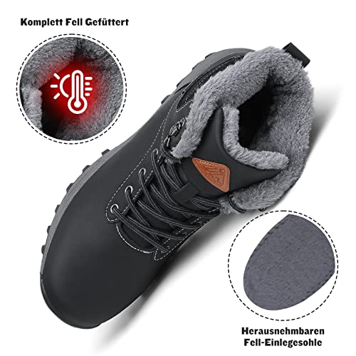 Mishansha Stivali Invernali Uomo Impermeabili Stivaletti da Neve Donna Pelliccia Foderata Outdoor Antiscivolo Scarpe Inverno Nero Gr.41