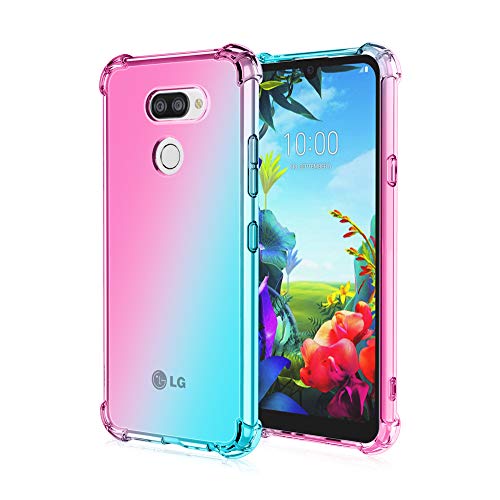MISKQ Cover Per LG K40S, Custodia TPU Silicone Case Shock Absorption Corner Cushion Bumper Back Ultra Leggere Silicone Ultra Sottile Case(Rosa/verde)