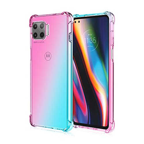 MISKQ Cover Per Motorola Moto G 5G Plus, Custodia TPU Silicone Case Shock Absorption Corner Cushion Bumper Back Ultra Leggere Silicone Ultra Sottile Case(Rosa/verde)