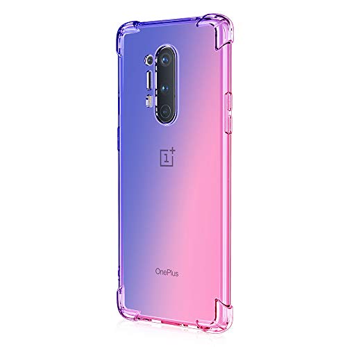 MISKQ Cover Per OnePlus 8 Pro, Custodia TPU Silicone Case Shock Absorption Corner Cushion Bumper Back Ultra Leggere Silicone Ultra Sottile Case(Blu/rosa)