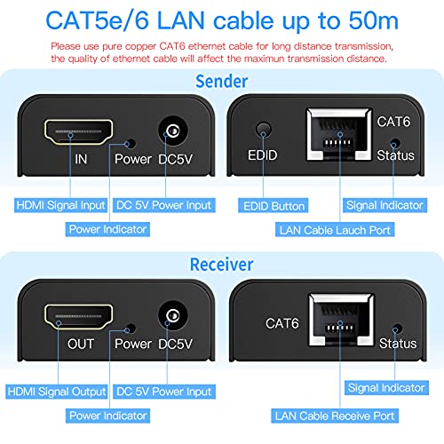 MISOTT HDMI Extender(50 Metri), 1080P HDMI Trasmettitore e Ricevitore, da HDMI a Ethernet Cat6 Cat7 Cavo fino a 164 piedi, HDMI RJ45 Extender Supporta 3D, HDCP, EDID