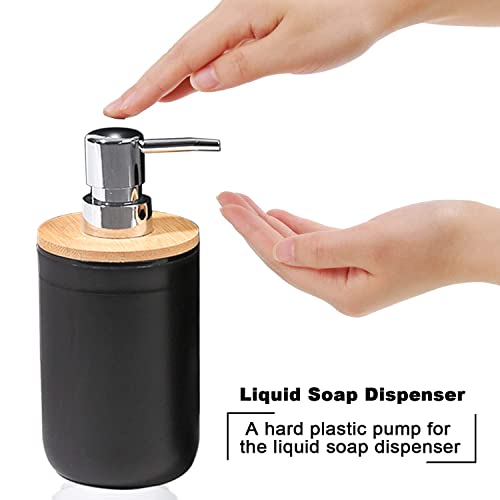 MissFox 6 Pezzi Set Bagno Accessori Completo, Set Accessori Bagno Moderni in Bamboo e Plastica, Kit Bagno Accessori con Dispenser, Pattumiera, Portasapone, Scopino, Portaspazzolino, Bicchiere, Nero