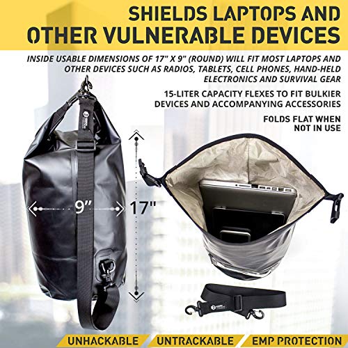 Mission Darkness Dry Shield Faraday Tote 15L // Waterproof Dry Bag for Electronic Device Security & Transport // Signal Blocking, Anti-Tracking, EMP Shield, Data Privacy for Phones, Tablets, Laptops