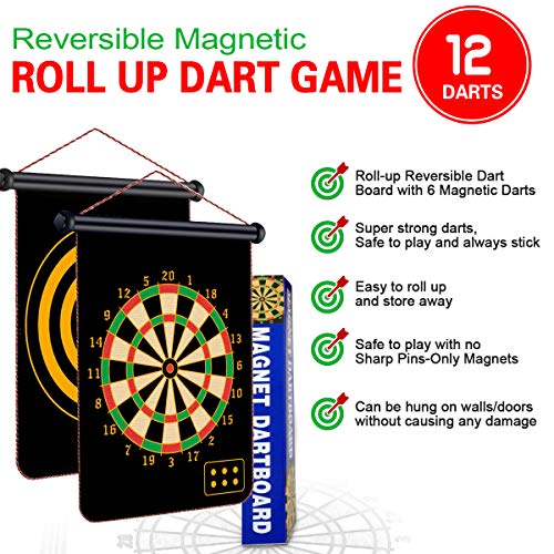 Mistep Freccette magnetiche, Freccette magnetiche arrotolabili 2-in-1 da 17 ", Giochi da Interno ed Esterno per Bambini con 12 Freccette magnetiche, miglior Regalo Giocattolo