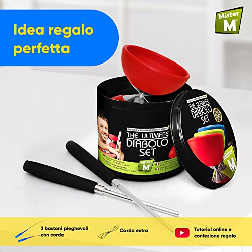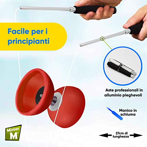 Mister M Diabolo Toys Multicolore - Set da Giocoliere Basic con Diabolo - Giocattolo da Giocoleria - Ideale Come Regalo per Bambini, Principianti E Principianti - Istruzioni Incluse