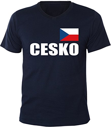 Mister Merchandise Uomo V-Neck T-Shirt Cesko Fahne Flag, Men Maglietta Camicia, Taglia: XXL, Color: Navy