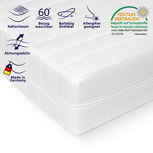 Materasso ortopedico in schiuma fredda, 80 x 200 cm, con taglio a 7 zone, per una regolazione ottimale del corpo e elasticità, 100% Made in Germany, adatto a persone allergiche e contro mal di schiena