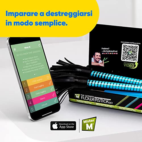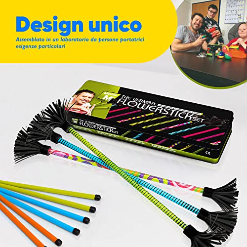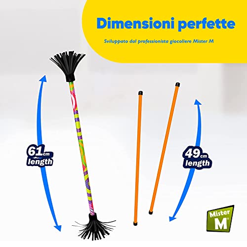 MisterM Il Set di Bastoni da Fiori definitivo per La Giocoleria - Inclusi Video Tutorial Online - Bastoni Giocoleria Con Manici in Silicone - Elegante Scatola Regalo