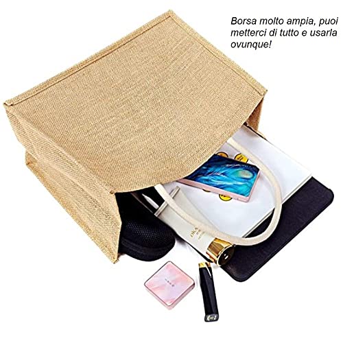 00 MISTEV Borsa Juta Naturale Beige per Spesa Regali Viaggi Spiaggia Shopping Portatile Riutilizzabile Artigianale Ecologico Resistente 1 Pezzo