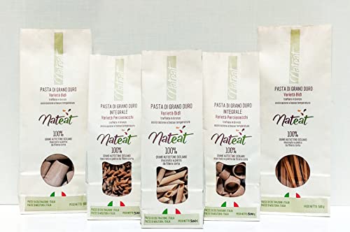 CONTENUTO:10 PACCHI DA 500 g DI PASTA DI GRANO DURO AUTOCTONO SICILIANO VARIETA' BIDI': 2 PZ LINGUINE - 2 PZ PACCHERI - 2 PZ PENNE RIGATE / VARIETA' PERCIASACCHI INTEGRALE: 2 PZ CALAMARATA - 2 PZ FUSILLI