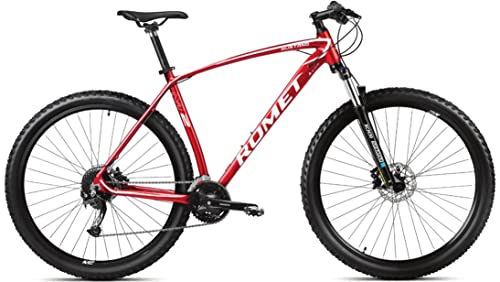 BICI MISURA 29 MTB FRONT AMMORTIZZATA SR Suntour XCM ROMET MUSTANG M2 LITE BICICLETTA MOUNTAIN BIKE TELAIO ALLUMINIO CAMBIO Shimano ALIVIO 27V ROSSO BIANCO (48,5 CM - L)