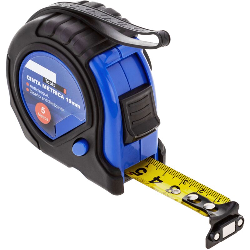 Metro a nastro laminato. Lunghezza massima di 3 m. Larghezza del nastro 16mm. Sistema di retrazione automatica. Leva di bloccaggio della misura di nastro. Nastro stampato con misure in sistema metrico decimale (centimetri). Ha 2 magneti nella parte superiore dell'inizio del nastro per il fissaggio su oggetti metallici Specifiche Lunghezza massima: 5 metri. Larghezza del nastro: 19 mm.